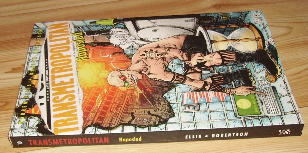 Oceňovaný scenárista Warren Ellis (The Authority, Planetary) a výtvarník Darick Robertson (The Boys, Wolverine) komiksem Transmetropolitan: Naposled zamykají dveře, zhasínají světla a nastavují ciferníky časovaných bomb. Kniha obsahuje sešity 55–60 jejich nezničitelné série společně se speciály Nenávidím to tu a Města hnus, narvanými kresbami hostujících výtvarníků.